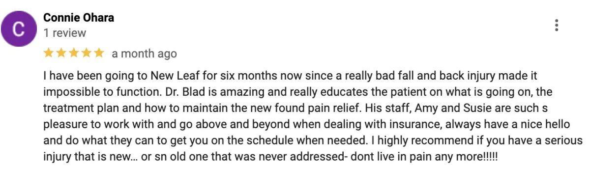 As part of this Wave Therapy special, you will receive the following at your appointment with New Leaf Chiropractic: